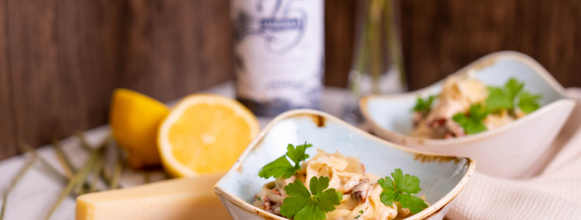 Kui mina, Itaalia köögi suure austajana, lisan koguaeg toitudesse veini (näiteks siin KREVETIPASTAS kasutasin ma veini), siis anti mulle väljakutse! Te ise tahate ka, et ma endale väljakutseid esitaks – niiet siit ta tuleb! Saaremaa Vodka esitas mulle oma 25nda juubeli puhul väljakutse – tee kolmekäiguline õhtusöök kasutades igas toidus viina. Muid kriteeriume ei olnud – ainult, et kasuta viina ja tee sellest nii eelroog, pearoog kui ka magustoit või 2 pearooga ja 1 magustoit. Kuna ma olen suhteliselt võistlushimuline, siis mõtlesin, et mis seal ikka, teen kõik 3 käiku ja naudime head toitu! Siin on teie eelroog – kanapasta kooreses sidruni-viinakastmes! Muidugi, kui kõht on tühi, siis sobib see ideaalselt ka eelroast pearoaks konverteerida, aga kõhu saad Sa sellest kindlasti täis! 😉